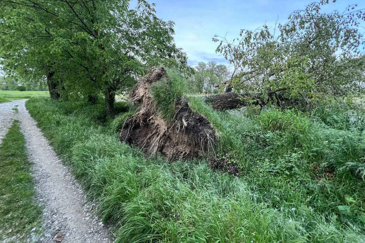 Abbattimenti e piantumazioni. I lavori non sono ancora stati eseguiti ma già schedulati per la prossima stagione agronomica (autunno –inverno 24-25). È prevista la piantumazione di 249 alberi e oltre 2mila arbusti forestali. (In foto uno degli ultimi pioppi vetusti abbattutosi questa primavera)