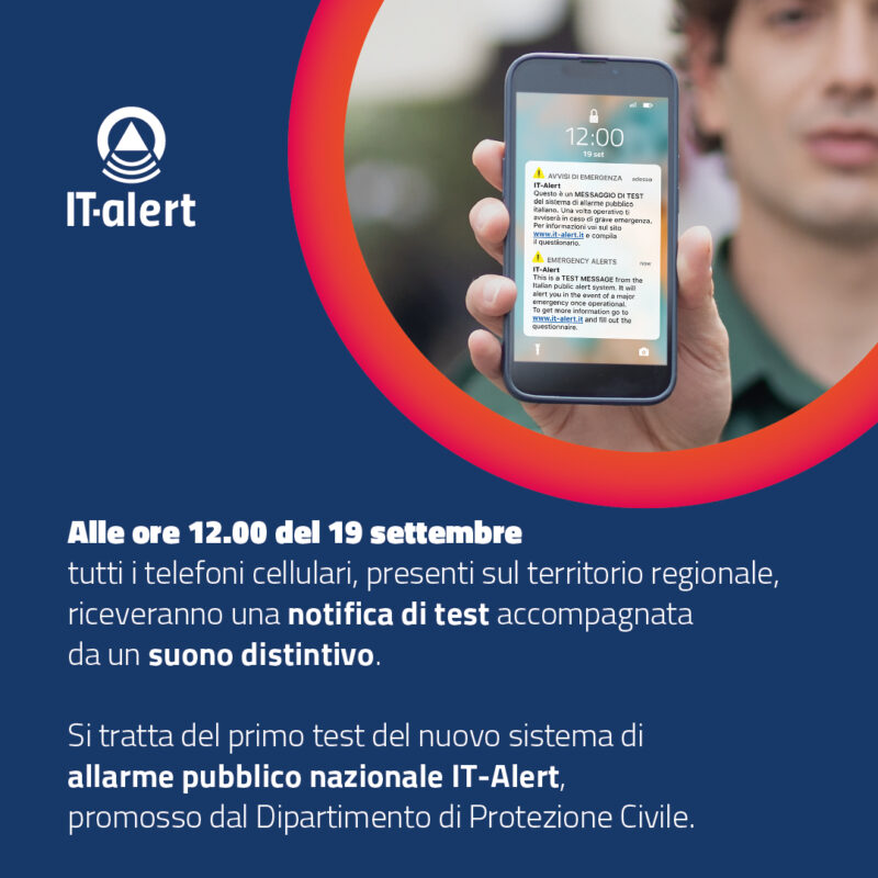 A mezzogiorno di martedì 19 settembre si svolgerà anche in Lombardia il primo test del nuovo sistema di allarme pubblico nazionale IT-Alert, promosso dal Dipartimento della Protezione civile.