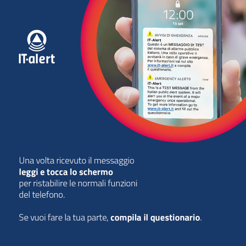 Chi vorrà, potrà compilare un questionario disponibile al link: https://www.it-alert.it/it/sperimentazione/