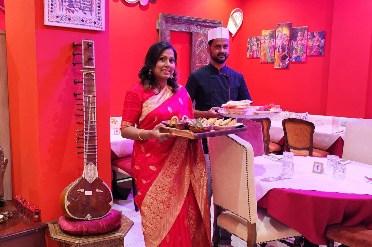 Il menù è poi ricchissimo, veramente adatto a tutti i palati (anche quelli che non amano eccedere nel piccante e nello speziato). Accanto ai piatti tipicamente indiani, lo chef, che vanta un’esperienza internazionale, propone pietanze come il Lemon Zafron Rice, un Basmati dal giallo intenso, accompagnato da gocce di limone, da far seguire da un Lamb Chop Tikka, cotolette di agnello rosso intenso, cucinate nel tipico forno Tandoori, o da un Chicken Dopiaza, un pollo color ocra, con peperoni e cipolla o ancora da polpette al formaggio (Shahi Kofta), annegate in una salsa verde a base di spinaci, assolutamente deliziosa. Ma la scelta e vastissima. Con la gentilezza tipica di quelle latitudini, la signora Suchitra – che parla un ottimo italiano – sa orientare perfettamente gli ospiti all’interno di un’offerta che spazia dagli antipasti caldi e freddi, fino ai dolci e che comprende menù vegetariani e vegani, a base di Curry e riso Basmati, specialità Biryani, piatti cucinati al Tandoori e piadine indiane.