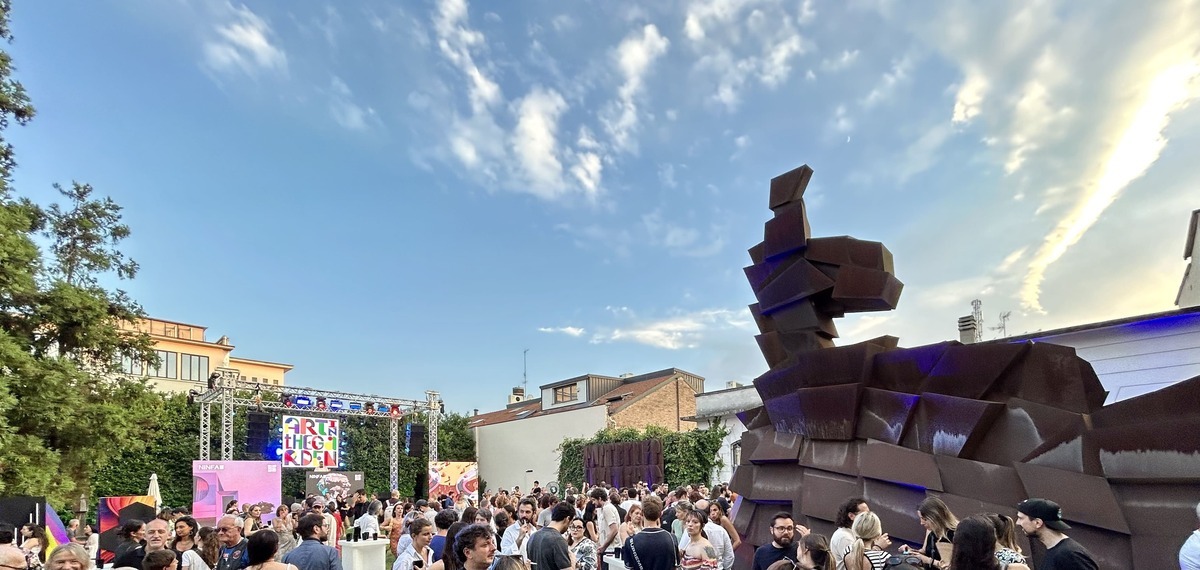 Bella festa con tanti giovani al Superstudio di via Tortona, per celebrare l’estate e l’arte insieme, giovedì 11 luglio. Art in the Garden era il titolo dell’evento.