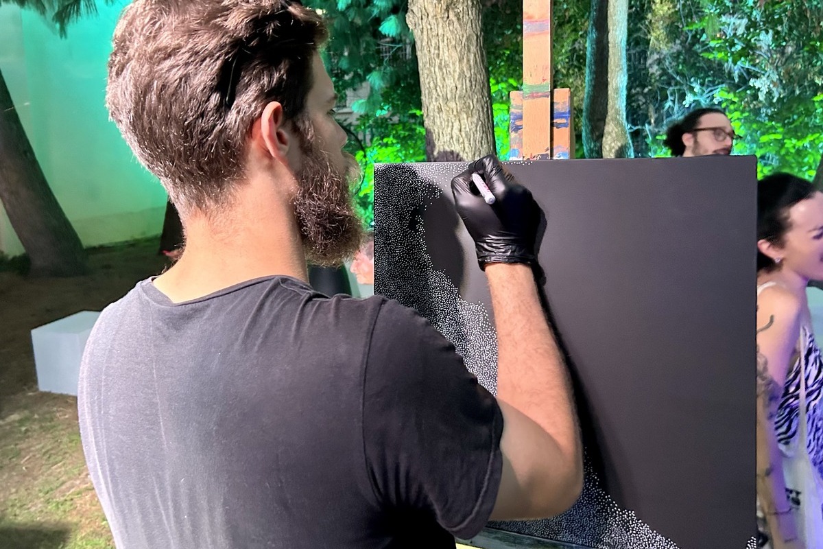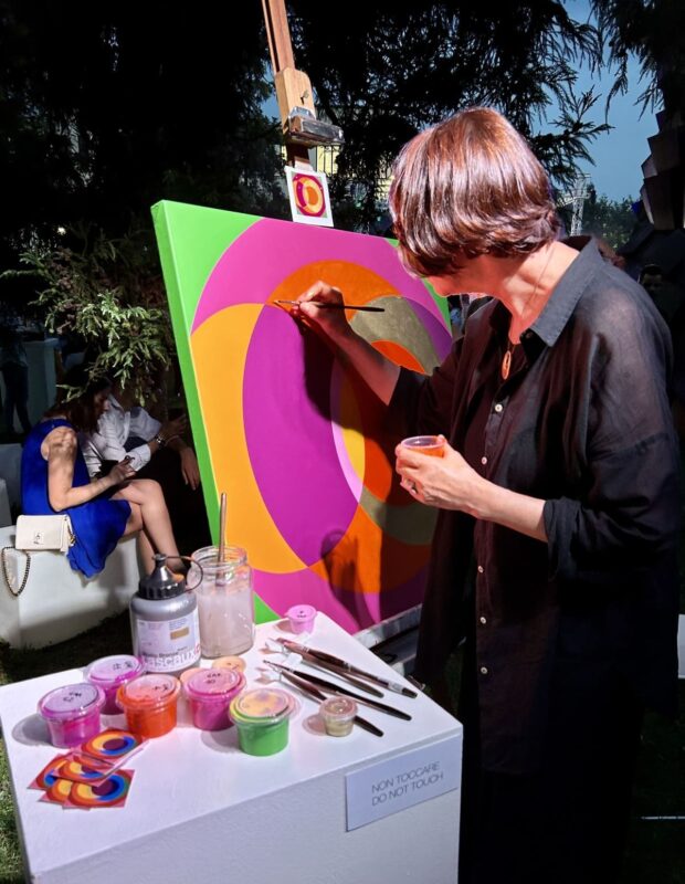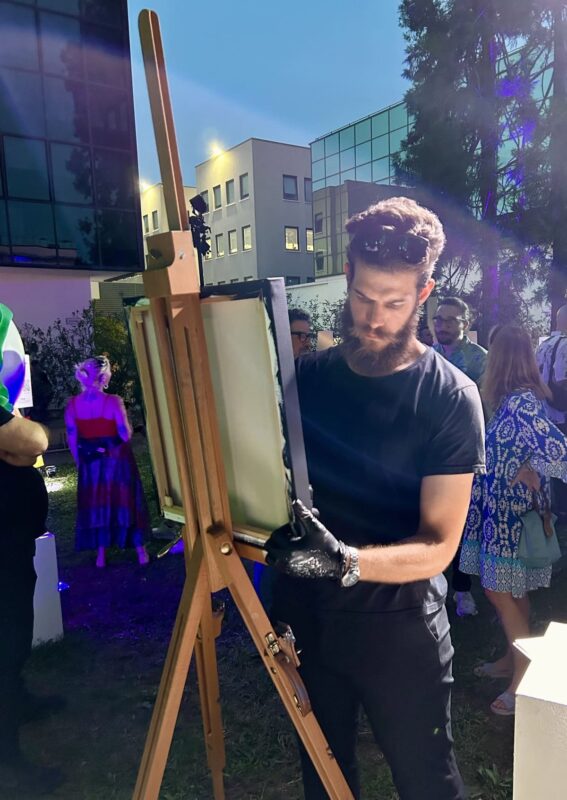 Nel giardino, appunto, sotto le grandi sculture in ferro di Flavio Lucchini, diversi giovani artisti hanno realizzato le loro opere en plein air mentre il pubblico curiosava, e – un po’ più in là – danzava.