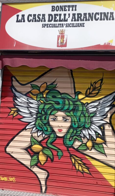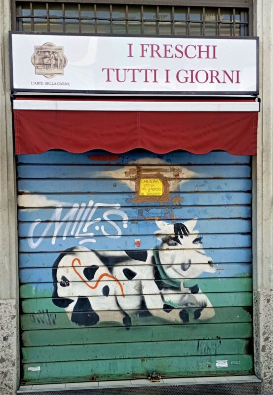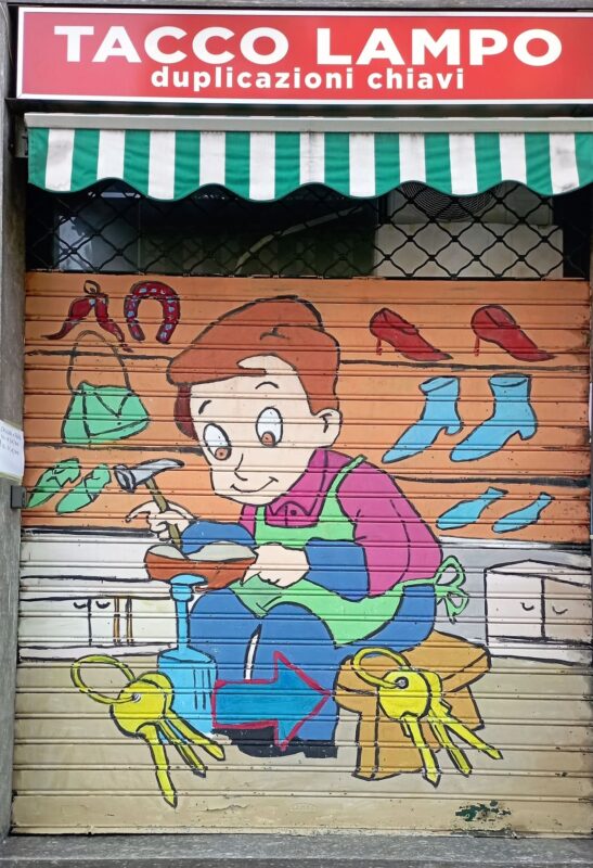 In genere ce ne accorgiamo solo di notte, dall’ora di chiusura in poi; mentre durante la chiusura estiva rimangono visibili tutto il giorno. Ecco allora che, al posto della triste fila di serrande tutte grigie, sorprendono quelle colorate del calzolaio, del macellaio, della gastronomia siciliana, dell’ottico in piazza Miani, del CAM S. Paolino e di altri negozi del Quartiere S. Ambrogio 1.