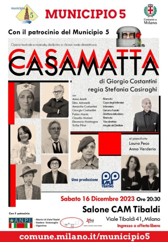 Dedicata a chi non vuole dimenticare, CASAMATTA è un’opera teatrale e musicale scritta da Giorgio Costantini con la regia di Stefania Casiraghi. La trama è avvincente, a tratti sarcastica, ci porta a ricordare cosa sono state le leggi razziali italiane e porci tutti di fronte a quesiti di bruciante attualità. Siamo davvero convinti che esista una sola razza umana? Cosa saremmo disposti a fare per evitare che si possa tornare a leggi su base razziale?