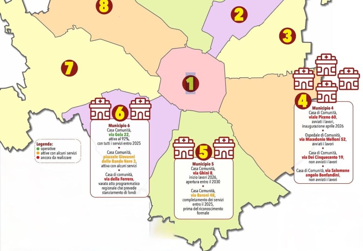 Risultano ancora da finanziare con fondi regionali la realizzazione delle Case di Comunità di via Dei Cinquecento 19 e di via Salomone, angolo Bonfandini.
