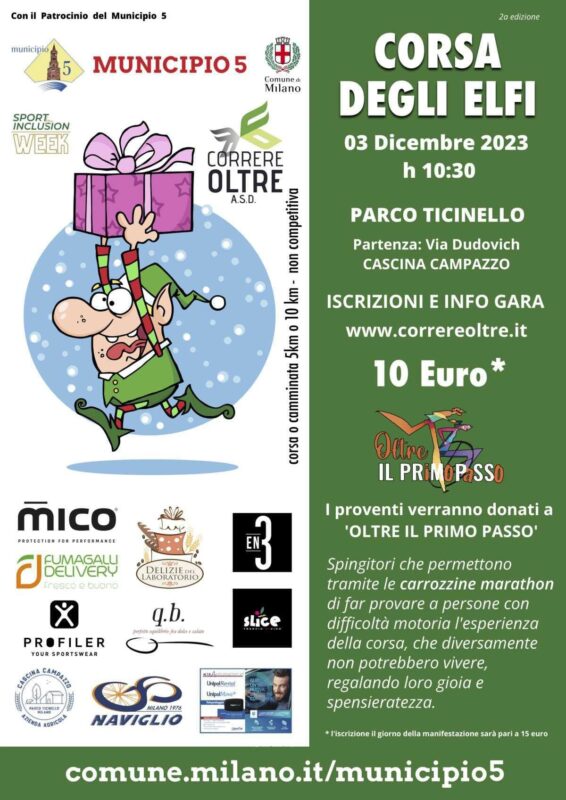 Domenica 3 dicembre dalle 10.30 alle 13 l’associazione “Correre Oltre ASD”, con il patrocinio del Municipio 5, realizza una corsa non competitiva aperta a tutti, all’interno del Parco Ticinello. Sarà una manifestazione solidale e una grande festa per tutti! Si potrà correre o camminare insieme a 5 carrozzine Marathon che parteciperanno alla gara di corsa.