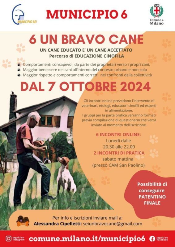 Dal 7 ottobre, presso il Cam di via San Paolino inizierà un percorso di educazione cinofila denominato “6 un bravo cane“.