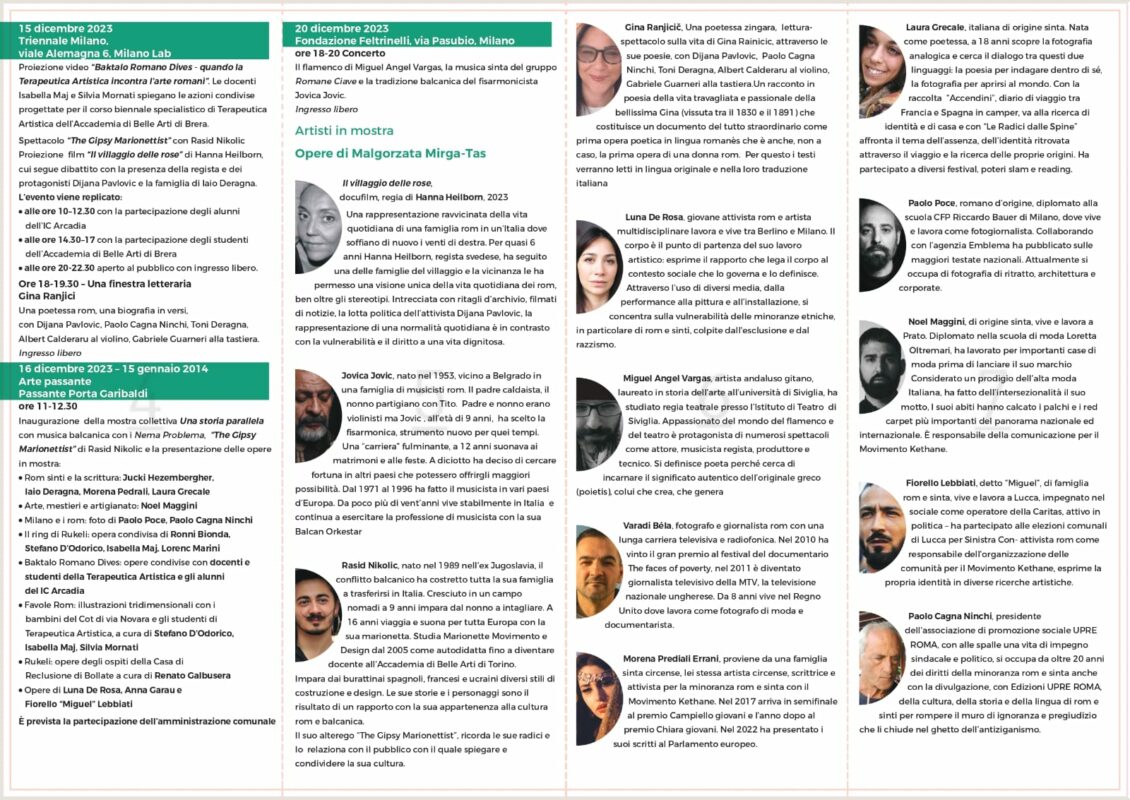 L’iniziativa è promossa nell’ambito delle azioni di contrasto all’antiziganismo e di promozione della cultura romani previste dal bando di coprogettazione rsc 2022-2023, area 4 promosso dal Comune di Milano Direzione Welfare e Salute – Area Diritti e Inclusione – Unità Diritti e Grave Emarginazione, con Ati aps Upre Roma e aps Kethane Italia e in collaborazione con Terapeutica artistica Brera.