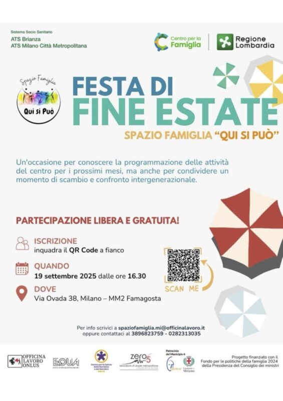 Spazio Famiglia, promosso da Regione Lombardia e con il patrocinio del Municipio 6, ha la sede in Via Ovada 38 a Milano, presso la Cooperativa Officina Lavoro onlus.