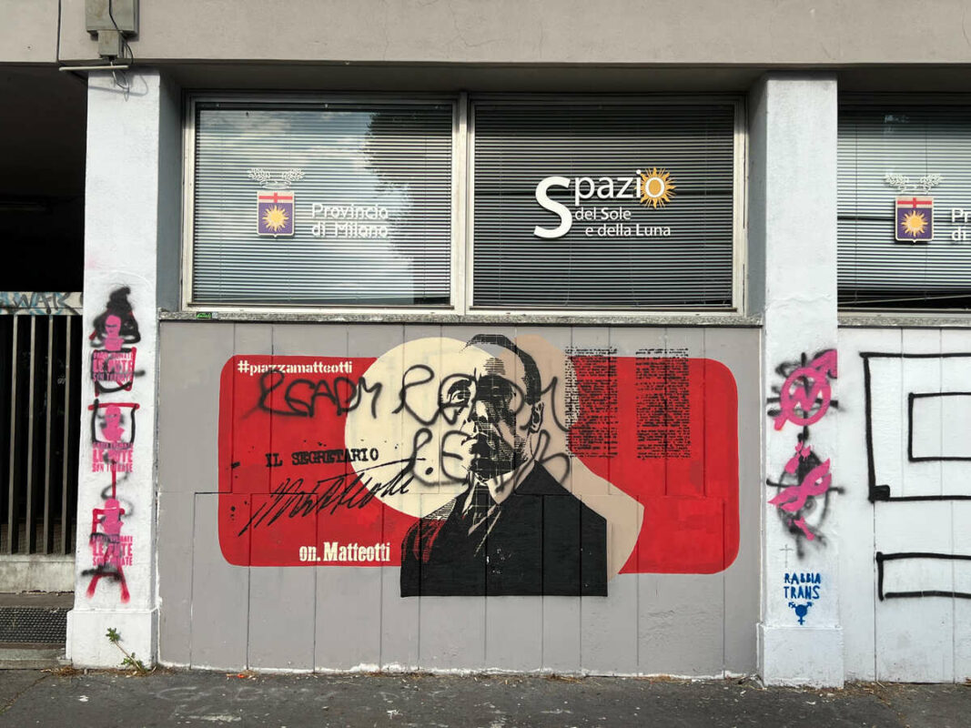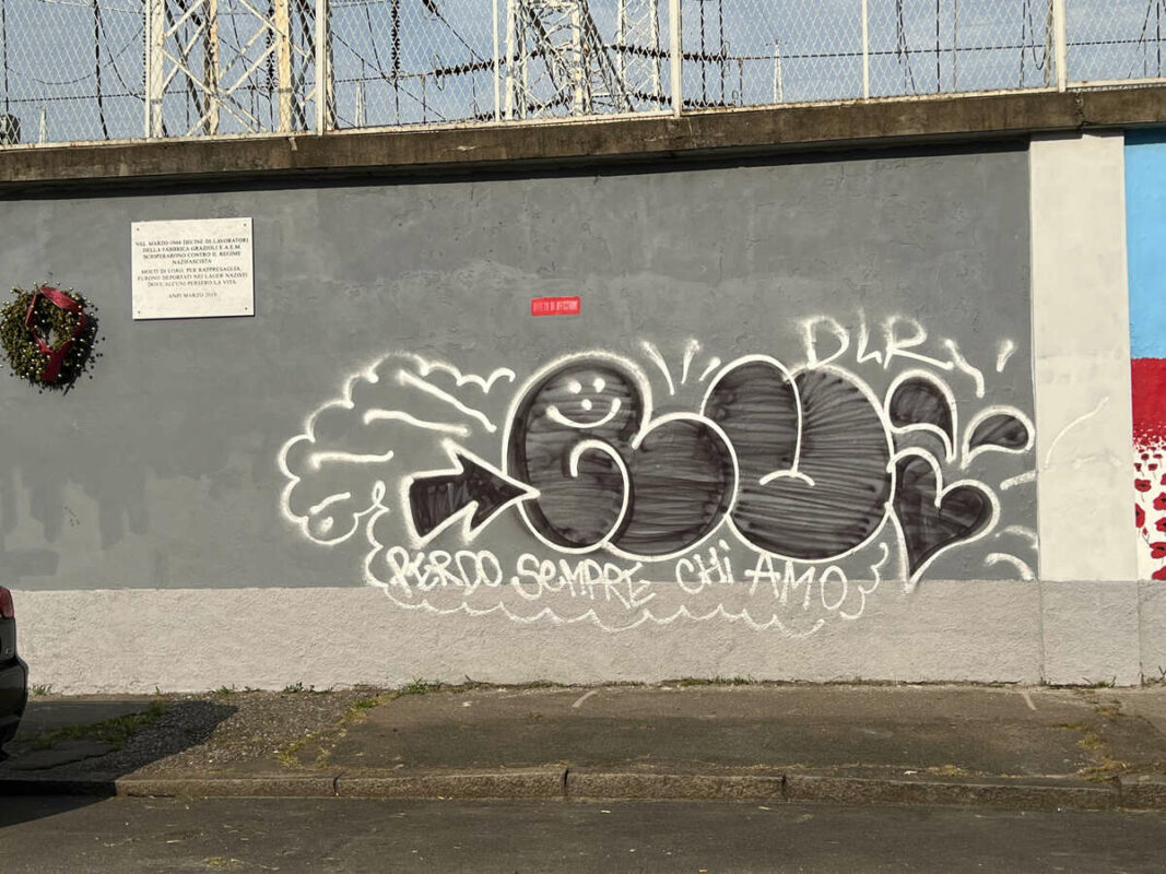 A pochi giorni dall’inaugurazione, come si temeva, il muro contenente la lapide, dipinto dai ragazzi di un grigio ferro intenso per dare risalto alla lapide, è stato danneggiato nella parte bassa, con scritte improprie. Così come nelle vicinanze, presso l’entrata del complesso scolastico di via Ulisse Dini, è stato orribilmente straziato il murales in onore di Giacomo Matteotti