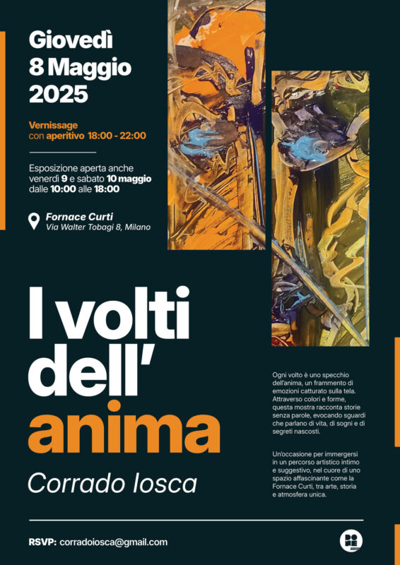 Dopo il successo della sua prima esposizione, Corrado Iosca presenta il suo secondo, attesissimo appuntamento artistico: “I volti dell’anima”, una mostra intensa e vibrante nella suggestiva cornice della Fornace Curti di Milano, nella splendida Sala Enclave, uno spazio che custodisce tutto il fascino della storia e dell’arte.