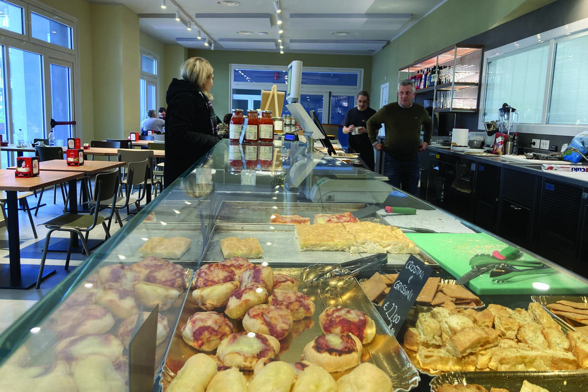 «Bum ha tre anime – ci spiega Andrea Miotti, presidente del Gruppo L’Impronta di cui Bum è l’ultimo nato -, la prima è quella di essere un panificio: qui, in oltre 300 mq di laboratorio, produciamo pane, pizze, focacce, pasticceria, torte salate e pasta fresca. La seconda anima è quella del bistrot caffetteria per colazioni, pranzi e aperitivi, compresa una piccola zona market con i prodotti di Agrivis, la nostra azienda agricola e di altre aziende agricole del territorio, e uno spazio dedicato ai bambini. Qui vicino infatti c’è un asilo e il complesso di case è abitato da molte giovani famiglie con bambini. Infine, la terza anima è quella del laboratorio di formazione, che offre da 12 a 24 postazioni per gruppi di persone che hanno voglia di imparare, feste per bambini e adulti e per le aziende interessate a fare team building in cucina».
