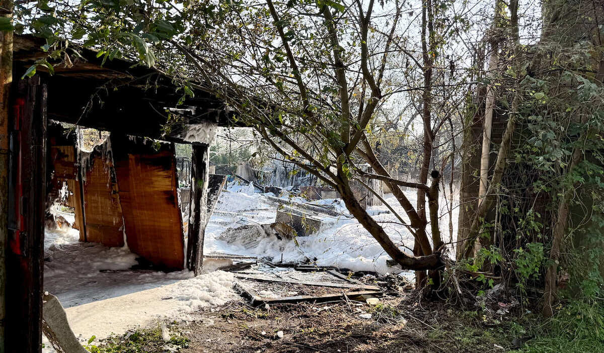 L’incendio ha distrutto alcune costruzioni poste sulla sinistra della cascina – entrando da via Campazzino appena superato il cancello – di fronte agli orti interni. Il danno peggiore è risultato a causa di alcune costruzioni in legno, non sono state danneggiate le parte in cemento.