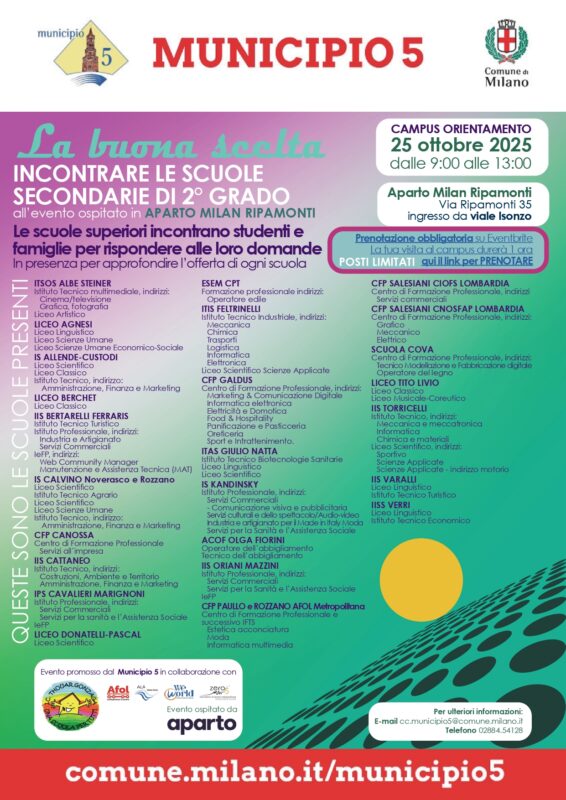 Unâiniziativa che conferma il ruolo del Municipio 5 di Milano come punto di riferimento per studenti, famiglie e scuole nella costruzione del futuro educativo dei piĂč giovani.