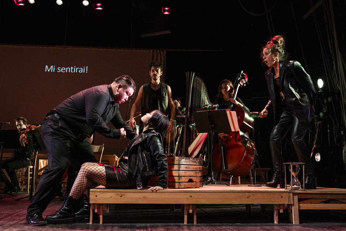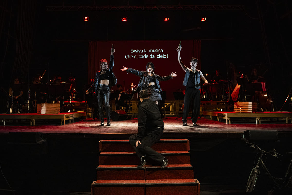 Serena Sinigaglia firma una versione che valorizza a pieno il pensiero teatrale brookiano, e dall’altra compie un ulteriore passo e trasforma l’allestimento in opportunità di formazione e di crescita per i giovani artisti, in collaborazione con il Conservatorio Giuseppe Verdi di Milano. L’orchestra, i cantanti, il direttore d’orchestra, i maestri accompagnatori, tutte le figure artistiche sono giovani diplomandi del Conservatorio. «Con la prestigiosa istituzione musicale abbiamo costruito un percorso laboratoriale di avvicinamento che è durato 8 mesi. Per tutte le figure artistiche coinvolte, giovani diplomandi, alla prima esperienza con il grande pubblico”. Straordinario finale: la musica si fa volutamente disarmonica ed inquieta, furiosamente concentrata in un ritmo drammatico martellante che preannuncia il tragico epilogo: violento e ineluttabile. E, sul ritmo, scandito da un tamburo in sordina, Carmen (che nel frattempo ha dato il suo amore al torero Escamillo), viene pugnalata da Don Josè, incapace di accettare la fine del loro amore (prima eroina dell’opera lirica ad essere assassinata sulla scena).