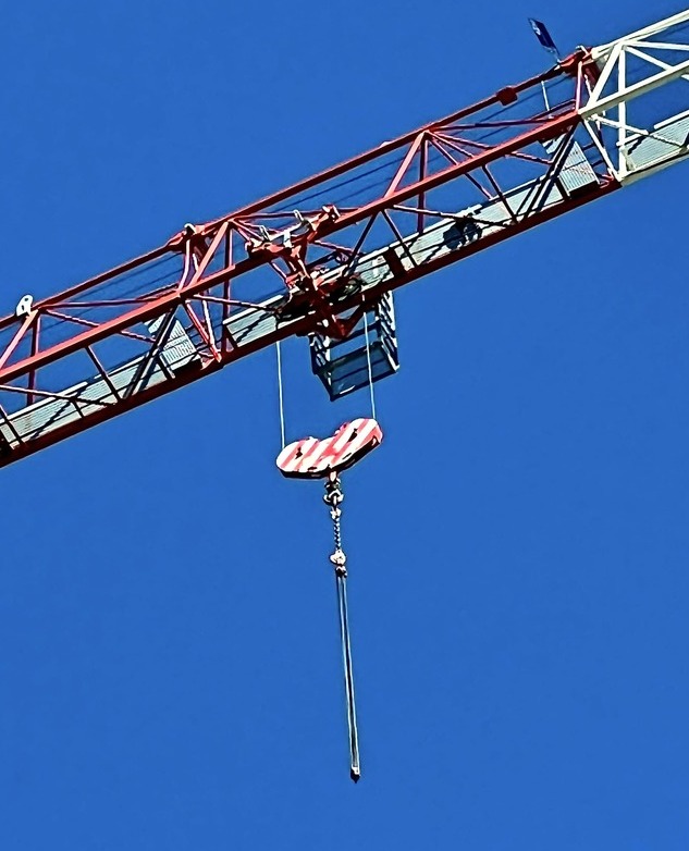 Un gancio a forma di cuore pende dalla gru, quale simbolo di rinascita