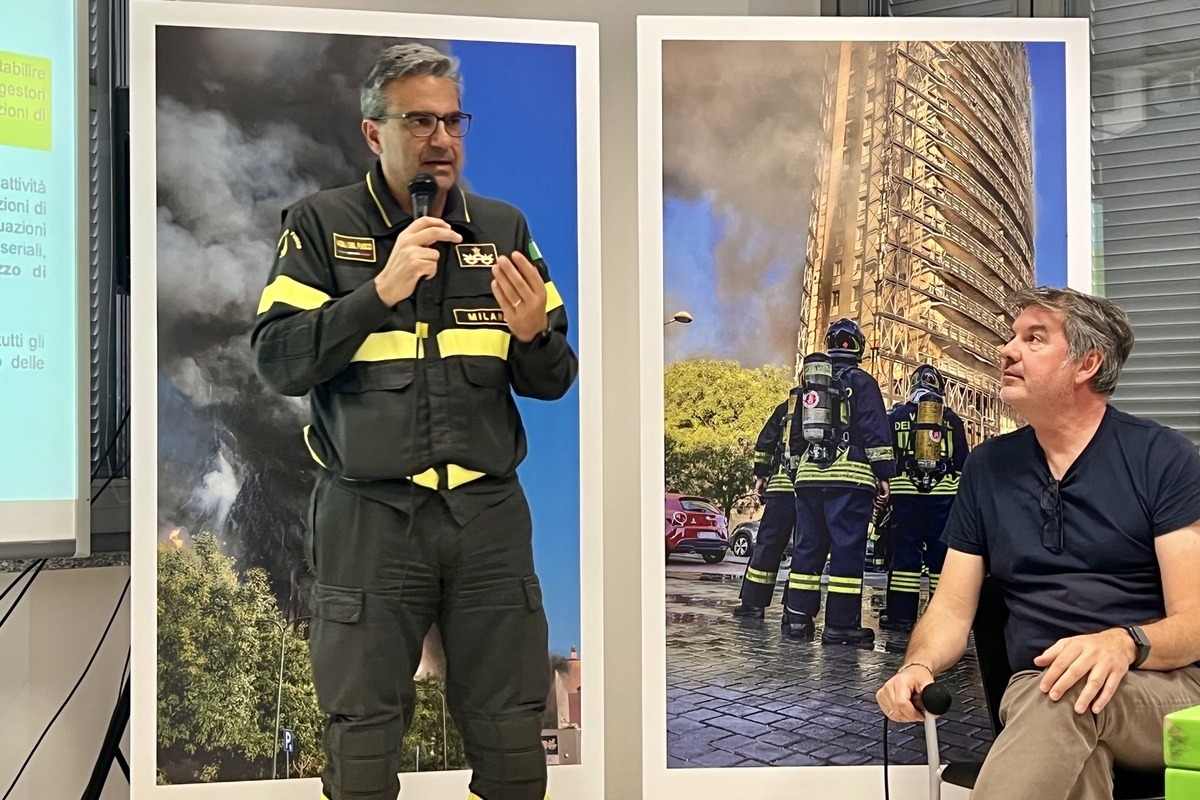 Tra loro scorgo qualcuno che, pur sconvolto, li riunisce, domanda loro quante persone siano ancora all’interno del grattacielo, si muove per dare indicazioni urgenti ai vigili del fuoco che stanno salendo alla ricerca di altri sventurati, risponde alle concitate domande dei primi giornalisti e fotografi accorsi sul luogo. Apprendo solo dopo che è Mirko Berti, proprietario di uno degli ultimi piani, colui che in seguito prenderà le redini in mano per seguire la complicata e difficile causa delle 82 famiglie sfollate da quando il rogo è scoppiato.