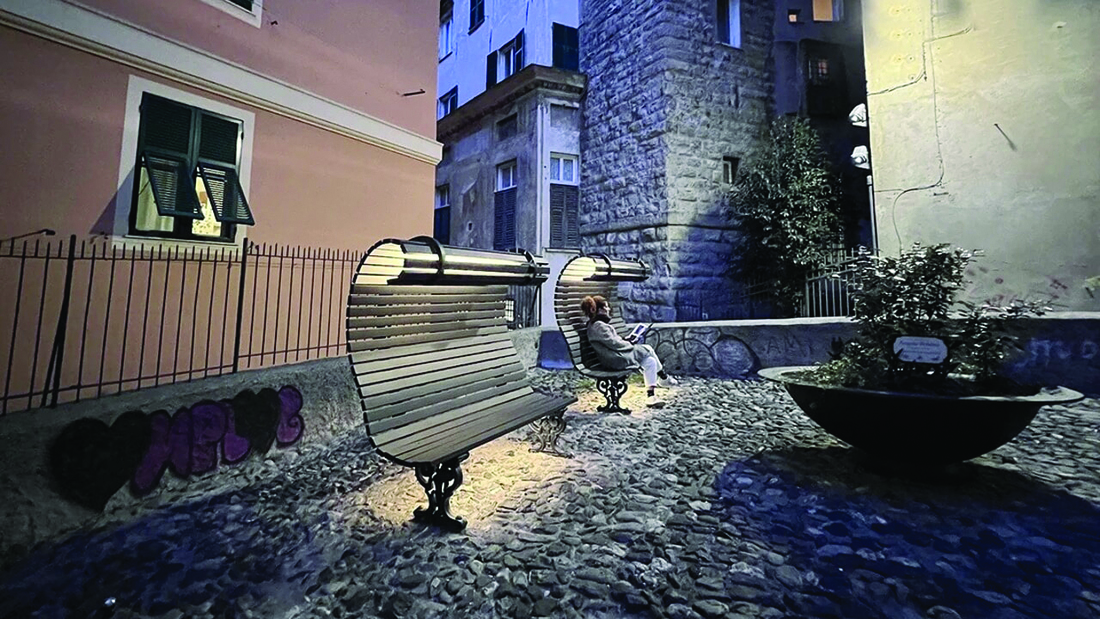«Si tratta del progetto Lighting for Genoa che ha vinto il primo premio ai Cities & Lighting Awards 2024. Il progetto ridisegna e rigenera gli spazi pubblici, particolarmente nelle ore serali, incoraggiando nuove forme di socializzazione come quella della lettura notturna sulle panchine. Il progetto è firmato da lighting designer appartenenti alla rete Women in Lighting, che contatteremo sicuramente».