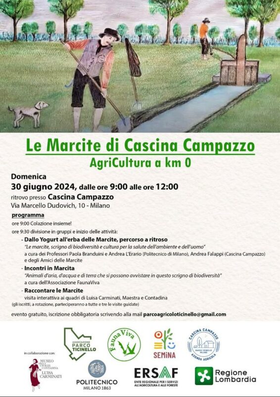 L’evento è gratuito, con iscrizione obbligatoria scrivendo una mail a parcoagricolticinello@gmail.com Il ritrovo è presso la Cascina Campazzo, via Marcello Dudovich 10, Milano (Fermata MM di Piazza Abbiategrasso e dei tram 15 e 3; parcheggio sulla via Dudovich in prossimità dell’ingresso del Parco Ticinello).