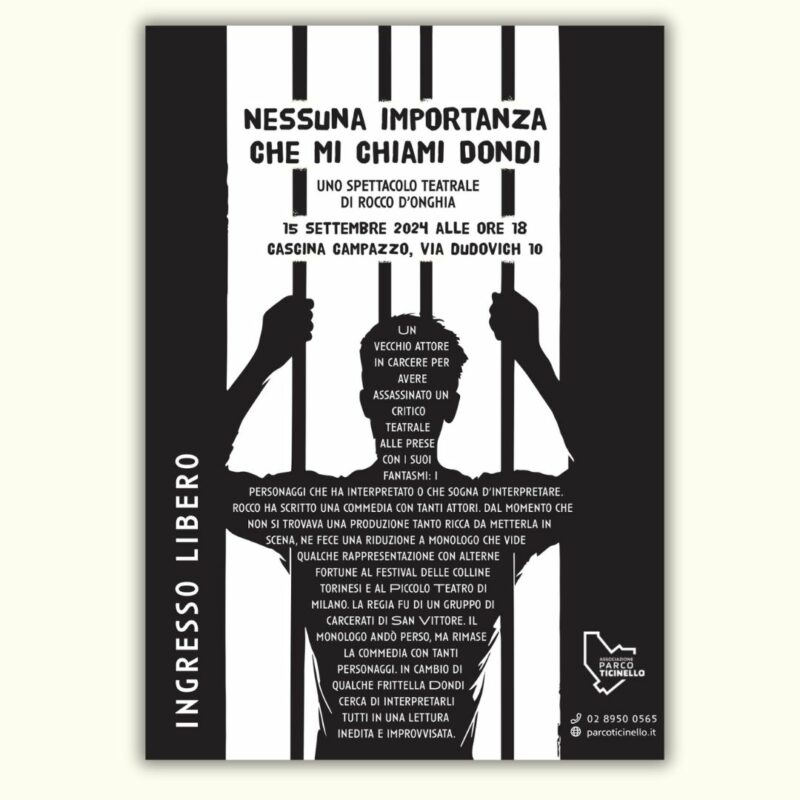 “Nessuna importanza che mi chiami Dondi” è lo spettacolo teatrale che si terrà in Cascina Campazzo. il primo di una serie di appuntamento di settembre organizzati dall’associazione Parco Ticinello nel benamato Parco agricolo urbano Ticinello!