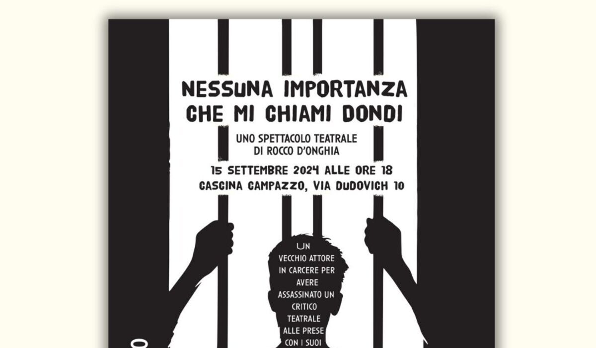Domenica 15 settembre alle 18, “Nessuna importanza che mi chiami Dondi”, è uno spettacolo teatrale di Rocco D’Onghia, interpretato dall’attore e doppiatore Ruggero Dondi (scuola del Piccolo Teatro), grande amico della Cascina Campazzo. Chi lo conosce non rimarrà sorpreso dallo show, ma coloro che lo ascolteranno per la prima volta… è bene che allaccino le cinture di sicurezza! Sarà una tragedia? Una commedia? Piuttosto un dramma! Chi verrà vedrà!