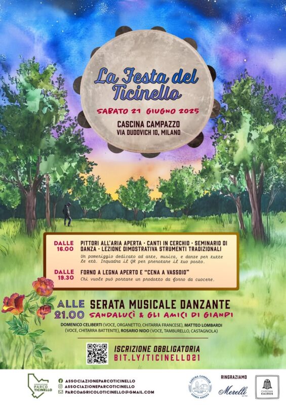 Il ritrovo si trova presso la Cascina Campazzo, in via Dudovich 10, l’anima e il cuore del Parco Ticinello. Il programma prevede un pomeriggio di musica, arte e ballo all’aperto, seguito da un concerto sotto le stelle. La giornata è organizzata dall’Associazione Parco Ticinello e dagli amici di Gianpiero Nitti, Viandante del Parco.