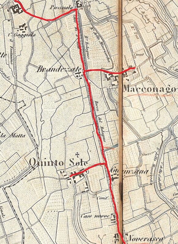 Nello scorso articolo abbiamo percorso la strada Vigentina fino a Cascina Pozzuolo, al margine dell’odierno centro abitato; proseguiamo adesso verso sud, in quella che, oggi come nel 1865, è aperta campagna punteggiata da borghi e cascine.