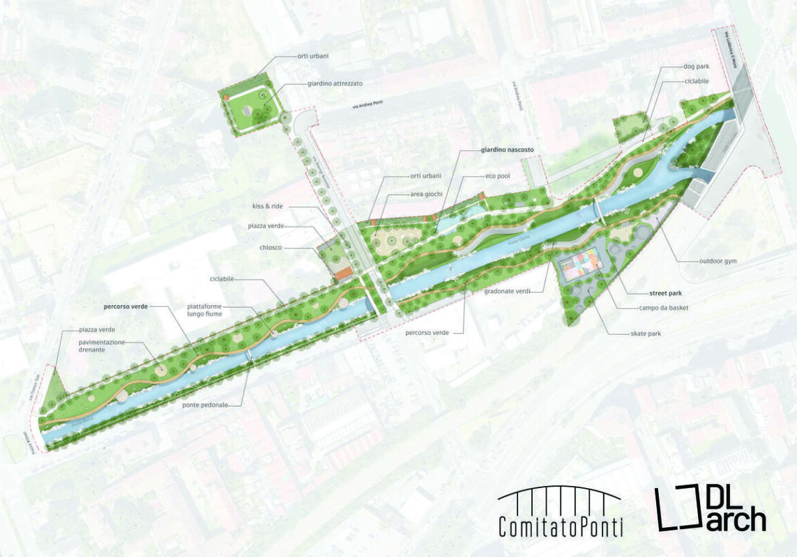 Trasformiamo un’area degradata in un luogo bello e d’incontro. È con questa volontà che gli abitanti dell’area intorno al Lambro Meridionale, nel tratto dal Naviglio Grande fino al Villaggio Barona, hanno pensato Riviera Verde, un progetto di riqualificazione realizzato dallo studio DL-Archtects. «Abbiamo coinvolto cittadini e associazioni, come Artkademy, Opera in Fiore, Anche Parco, Around Richard e la Fondazione Angeli del Bello – ha spiegato Massimiliano Resta, presidente del Comitato Ponti, una realtà che nella stessa area ha trasformato uno spazio degradato in un giardino -. Ci siamo rivolti allo studio d’architettura di Simone Dell’Ariccia che ha realizzato un progetto di riqualificazione, “a pezzi”, per poter iniziare, magari, proprio dalla depavimentazione sulle sponde del Lambro Meridionale, il cui letto è pieno di ogni genere di cose, tanto che con le forti piogge piazza Bilbao si allaga».
