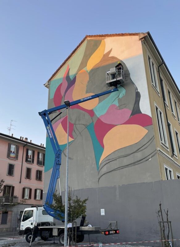 A Cesano Boscone: “Invasion”, il murale di Frode creato insieme all’artista finlandese Kyosti Linna nel corso dell’Urban Giants 2022, evoca i diritti di autodeterminazione dei popoli e di incomunicabilità tra Stati quali sovrastrutture.